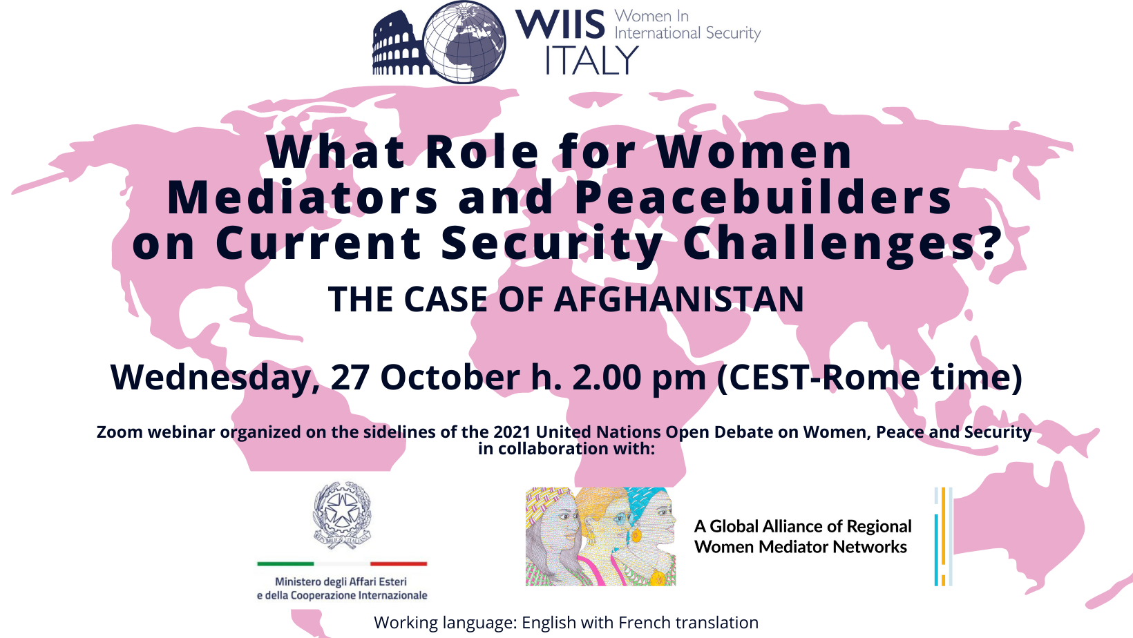 Le 27 octobre, WIIS Italy en collaboration avec l’Alliance Globale des Réseaux Régionaux des Femmes Médiatrices et du Ministère Italien des Affaires Etrangère et de la Coopération Internationale a organisé la Conference » Quel est le rôle des réseaux régionaux des femmes médiatrices face aux défis sécuritaires actuels ? Le cas de l’Afghanistan ».