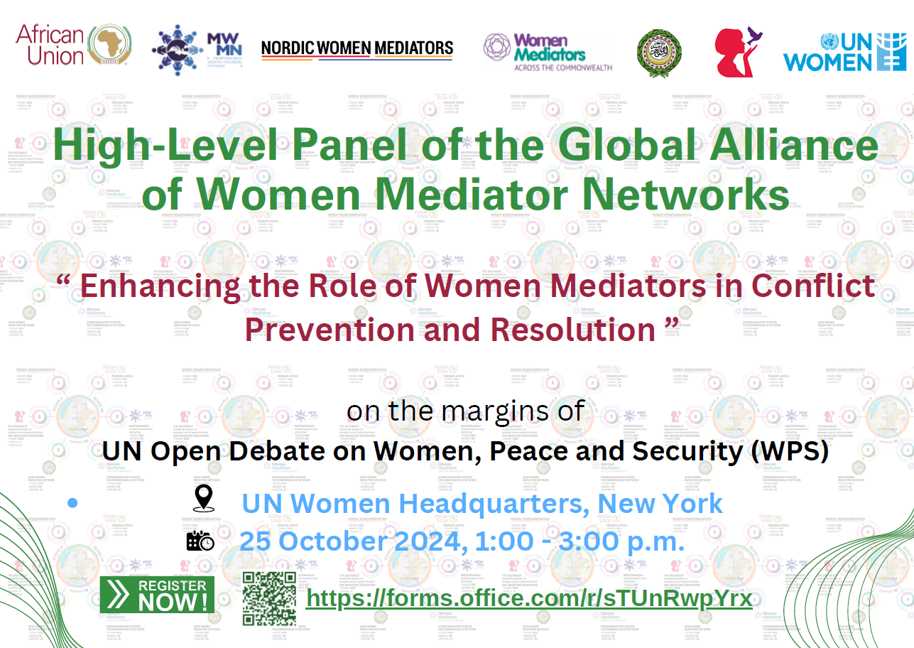 During the UN WPS Week 2024, the MWMN also promoted – together with other regional networks of women mediators and UNWOMEN, within the framework of the Global Alliance of Regional Women Mediators Network – a high-level panel on “Enhancing Women’s Participation in Conflict Prevention and Resolution” on 25 October 2024, at UNWOMEN Headquarters (New York).